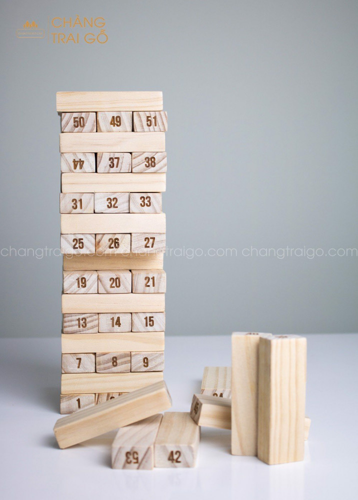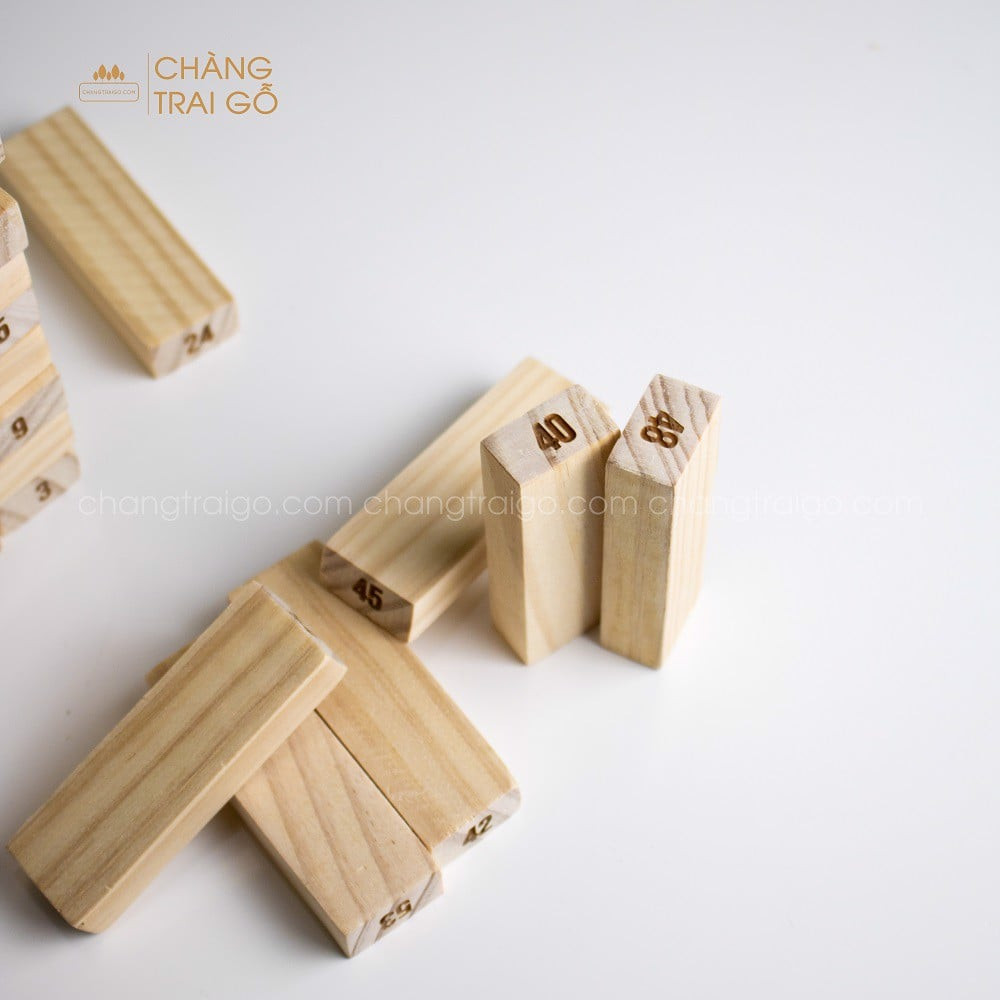 Chàng Trai Gỗ cho ra mắt bộ 54 thanh bộ Rút Gỗ Jenga có chữ số được làm từ 100% gỗ thông nhập khẩu ( khác hẳn so với thị trường)